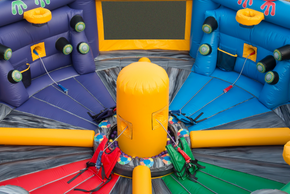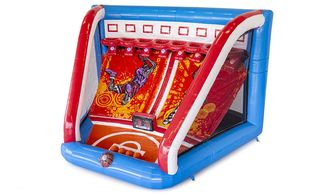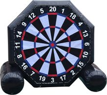 Then try our new Soccer Darts (Foot Darts). This huge inflatable dart board is 9' long x 19' wide x 16' high unit and sure to keep your party going for hours. Play it just like regular darts but use soccer balls for darts. The soccer balls will adhere to the board. Rent the Soccer Darts for your party today!
